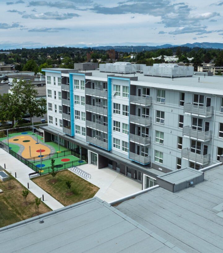 The Burnside School affordable housing project embodies the culmination of years of work between TL Housing Solutions and our project partners, including Pacifica Housing, the City of Victoria, BC Housing, School District 61, the Burnside Gorge Community Association, and the Canadian Mortgage & Housing Corporation. These various groups came together to deliver a community-minded, 88-unit affordable housing project with childcare and CRU space.